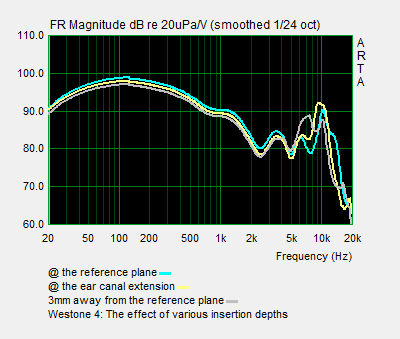 ON SECOND THOUGHT #2: The high frequency peak at 10 kHz won't go away, whether the insertion depth is deep or shallow.