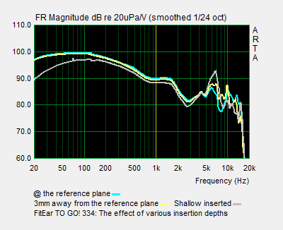 ON SECOND THOUGHT #1: Even though 334's tweeter unit is a Knowles ED-29689, the high frequency is well retained up to 3 mm away from the reference plane. Since custom IEMs' conventional insertion depth ends somewhere at this point, MH344's users might find this data useful as well.