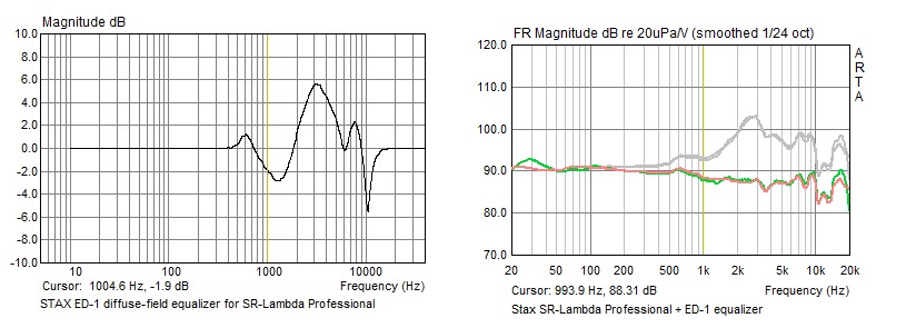 Moreover, this very headphone is an important piece of history of the headphone industry, as it has been featured in numerous research papers, including the well-known study of 1985, which helped standardize the diffuse-field reference, by Günther Theile. Furthermore, With the help of Institut für Rundfunktechnik(IRT), Stax come up with an equalizer, ED-1, which can turn SR-Λ Professional into an accurate diffuse-field simulator.