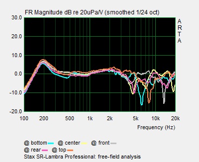 ON SECOND THOUGHT #3: A free-field analysis has been carried out at various locations within the frontal volume of the housing using an accurately calibrated microphone. The test result suggests that the entire surface of SR-Lambda Professional's diaphragm is not behaving as uniform as originally expected.