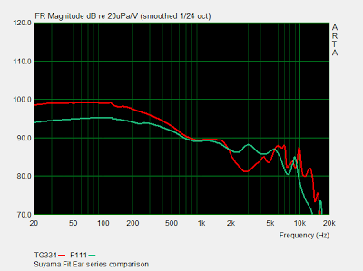 DeleteI'm a bit confused. If I fit the f111 correctly I can lower 16khz with my eq and easily hear the drop out. From your graph it looks like it doesn't even go past 11khz? If I boost the treble as well, I can only go 1-1db past 12khz before it sounds to "sharp" to me. I'm used to the er4s and pfe112, so I know what flatter and brighter phones sound like, however even though this is a "less bright" earphone, I seem to be getting better extension. However, with certain fits I defintely hear a cap around 11khz. So is it possible you didn't get a "perfect" fit for your measurements? I know you tried different distances, but for me it has to do with the seal and distance being perfect.